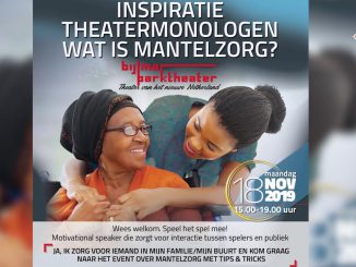 18 november Bijlmerparktheater: Inspiratie theatermonologen: Wat is Mantelzorg? Op 18 november van 15:00 tot 19:00 wordt er een theatermonoloog gepresenteerd over